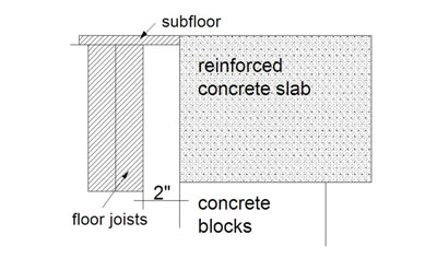 - 2? clearance to combustibles from foundation of a masonry heater. It is allowed to cross this gap between floor joists and foundation with sub floor and flooring materials (sample picture below).