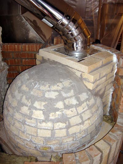The second bell before capping. Chimney connection point for 8" round chimney with clean-out underneath can be seen at the front wall.