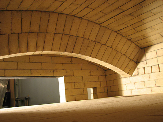 Oven is built over a 4" layer of Foamglass structural insulation laid on top of a reinforced concrete slab supported on a steel support system engineered and built by others. Foamglass is protected with Durock cement board.