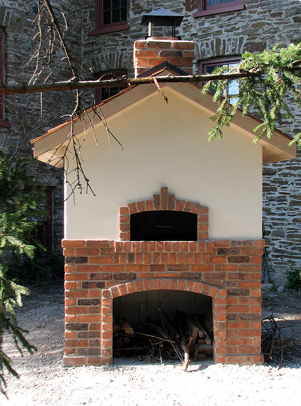 45"x54" Commercial Community Bread Oven for The Montgomery’s Inn Museum, Toronto, ON This 45"x54" net baking area community bread brick oven was built for the Montgomery’s Inn Museum in Toronto, ON. Although the primary use is intended for bread, the oven is done in half-mass construction equivalent to a standard pizza oven mass since the oven is intended for variety uses and bread baking is not anticipated to exceed 2-3 batches from a single firing. The oven core is heavily insulated for exceptional heat retention and even baking. The oven is finished with reclaimed clay brick and stucco with integral roof done in cedar shingles with cedar fascia and soffit. |