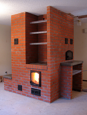 | Sergei & Sveta’s Heater, Bowser, Vancouver Island, BC This Russian-style multifunctional heater operates with a single firebox and features cook-top over the BIO-firebox, an extra-large direct bake oven, heated bench, drying shelves and integrated wood storage. The heater serves as the main heating source for a country home. | |||||||