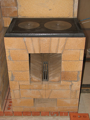 | Sergei & Sveta’s Heater, Bowser, Vancouver Island, BC This Russian-style multifunctional heater operates with a single firebox and features cook-top over the BIO-firebox, an extra-large direct bake oven, heated bench, drying shelves and integrated wood storage. The heater serves as the main heating source for a country home. | |||||||